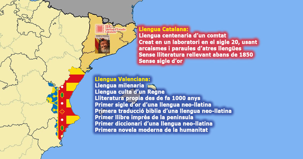 Pero en el cas de la llengua valenciana, no estem davant d’un problema llingüístic, puix és fàcil comprovar que la llengua valenciana és una llengua milenària i la grossera parla catalana és un invent de fa no res. En este cas estem davant d’un problema polític i d’un genocidi llingüístic, en el que uns, els catalanistes més rancis, encapçalats pel IEC volen fer desaparéixer la llengua valenciana, puix esta és la pedra en la sabata del catalanisme i de la llengua catalana, puix mentres que existixca la llengua valenciana i persones que la utilisem a diari, la llengua catalana no podrà tindre mai el seu moment d’esplendor, i eixe moment mai va a arribar, puix els valencians i valencianistes no deixarem d’utilisar la nostra benvolguda llengua valenciana i, nomenar-la com cal, llengua valenciana.